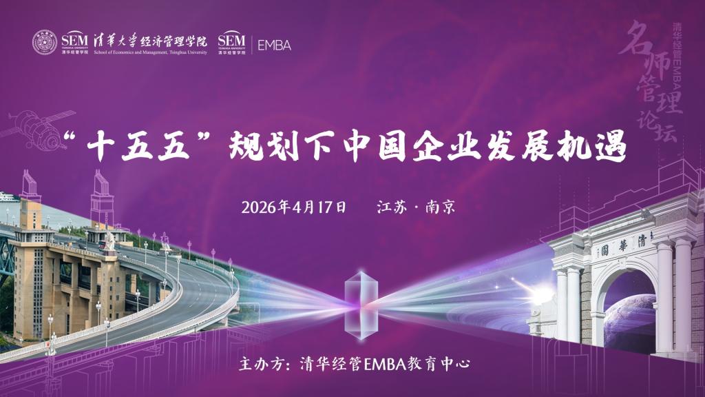 2026年4月17日,清华经管EMBA名师管理论坛长三角专场·南京站紧扣经济形势与政策导向,深度链接产业实践,特邀清华经管学院陈晓教授带来《“十五五” 规划下中国企业发展机遇》主题分享,助力破解发展难题,共探时代新机。